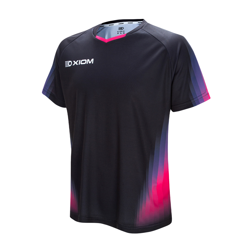 A XIOM SOLA foi desenvolvida para o mesa-tenista que busca alta performance sem abrir mão do design. Com um gráfico em gradiente sofisticado que simboliza a calma e a força interior do atleta, esta peça entrega o suporte necessário para cada movimento explosivo.
